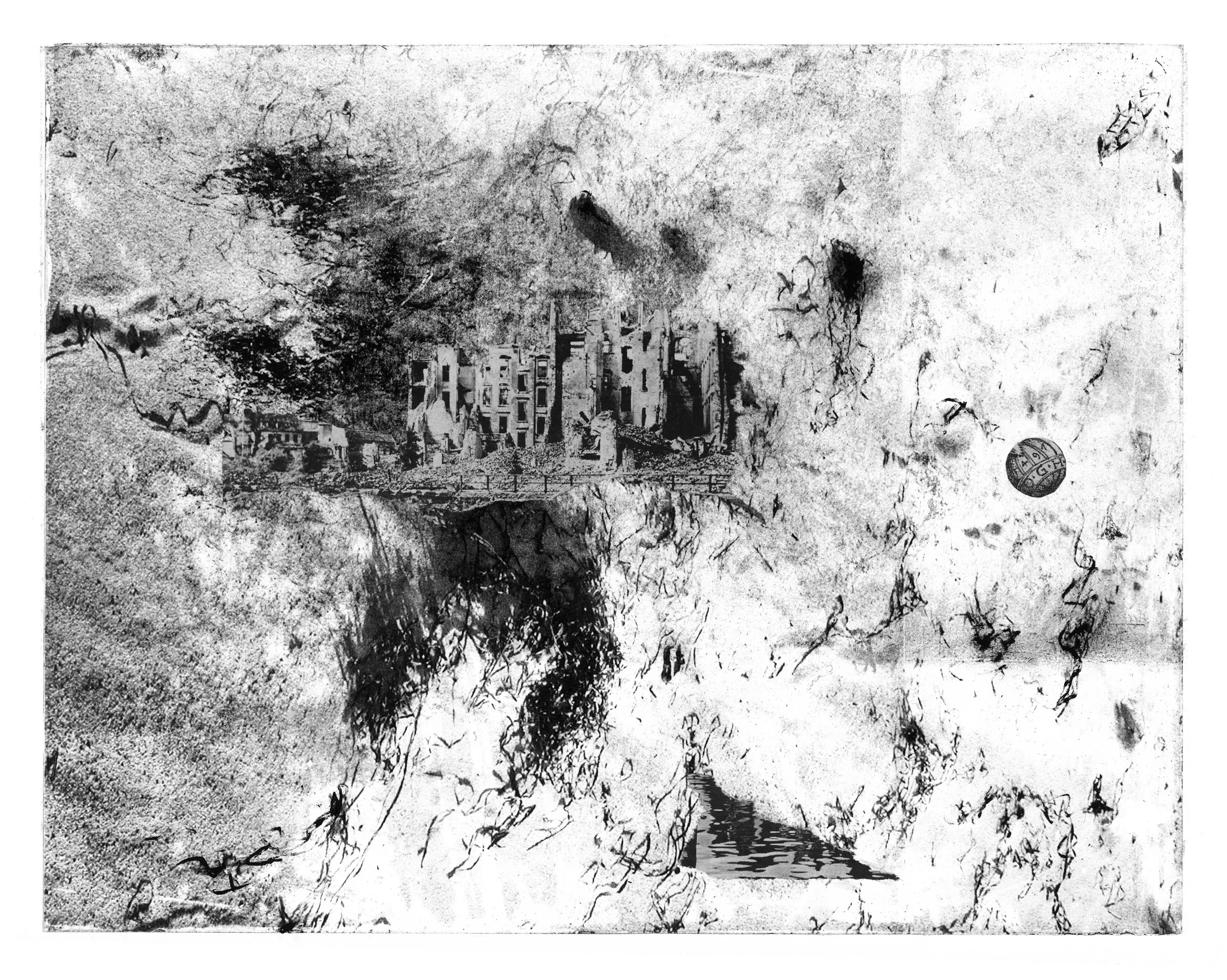 A City in a Desert. Non-toxic intaglio, collage. 38×45 cm. Private collection, USA.